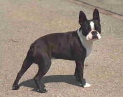 GAIT / MOVEMENT : The gait of the Boston Terrier is that of a sure footed, straight gaited dog, forelegs and hind legs moving straight ahead in line with perfect rhythm, each step indicating grace and power.
