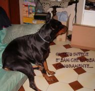 These are sam and kira mine two dogs that, strangely... (veramente forced they in spite of... sapete do not go very daccordo!!!) their tastes are seated at a distance too much drawn near x! sam e' the dobermann..lui it would be also inclined to a amicizia..ma kira just not!!! |